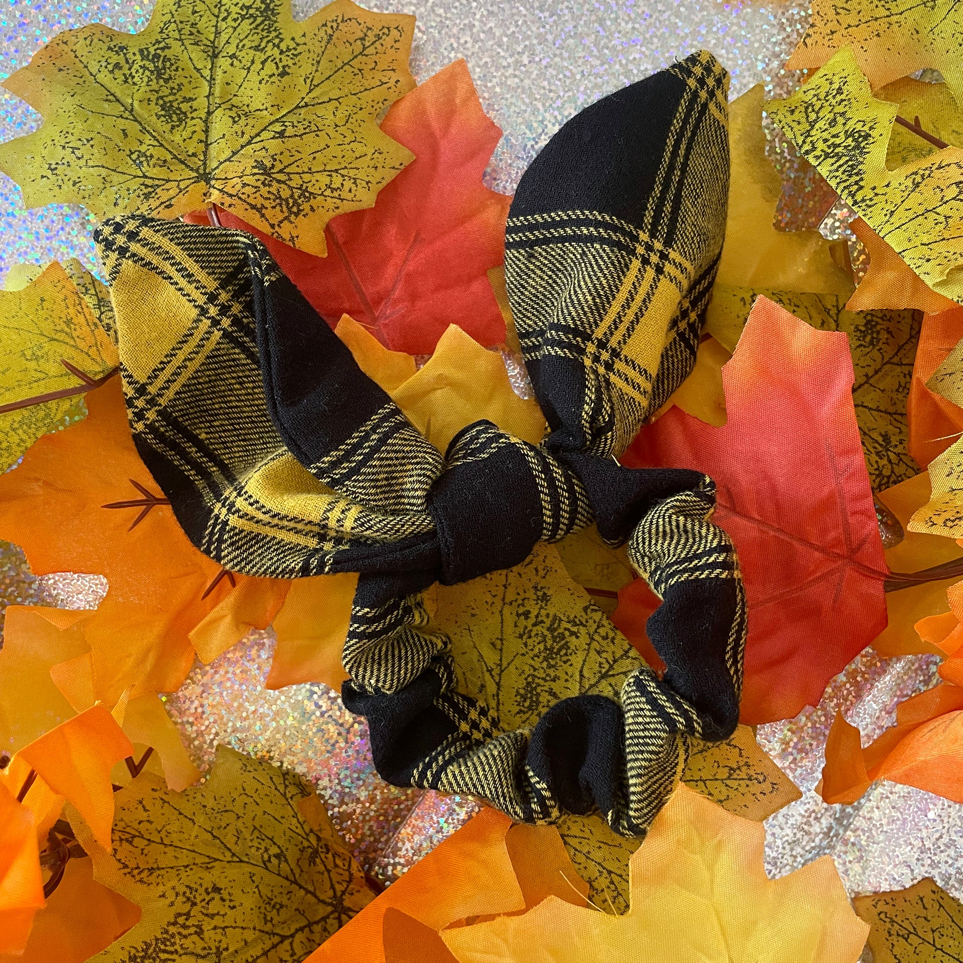 Mustard Check Hair Scrunchie