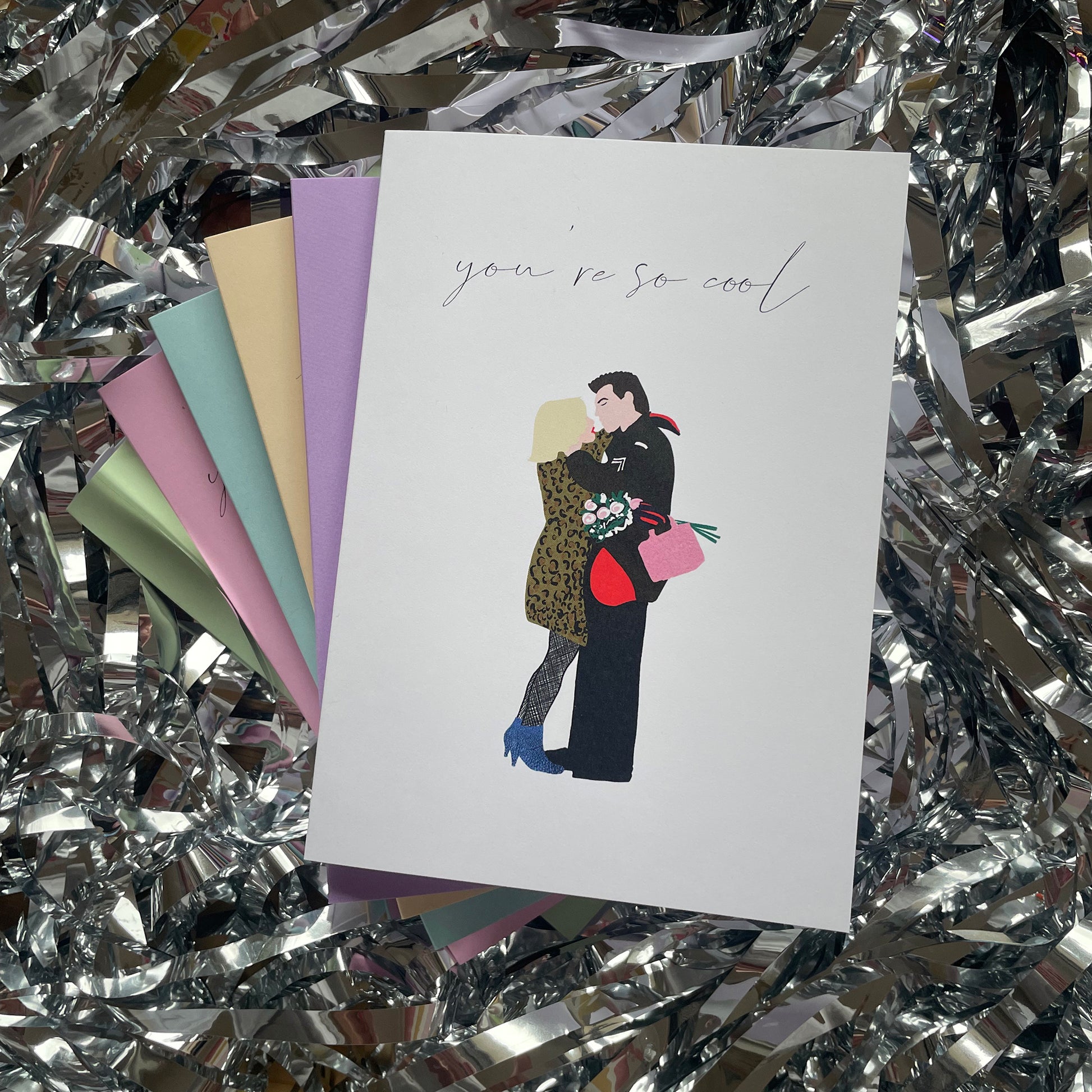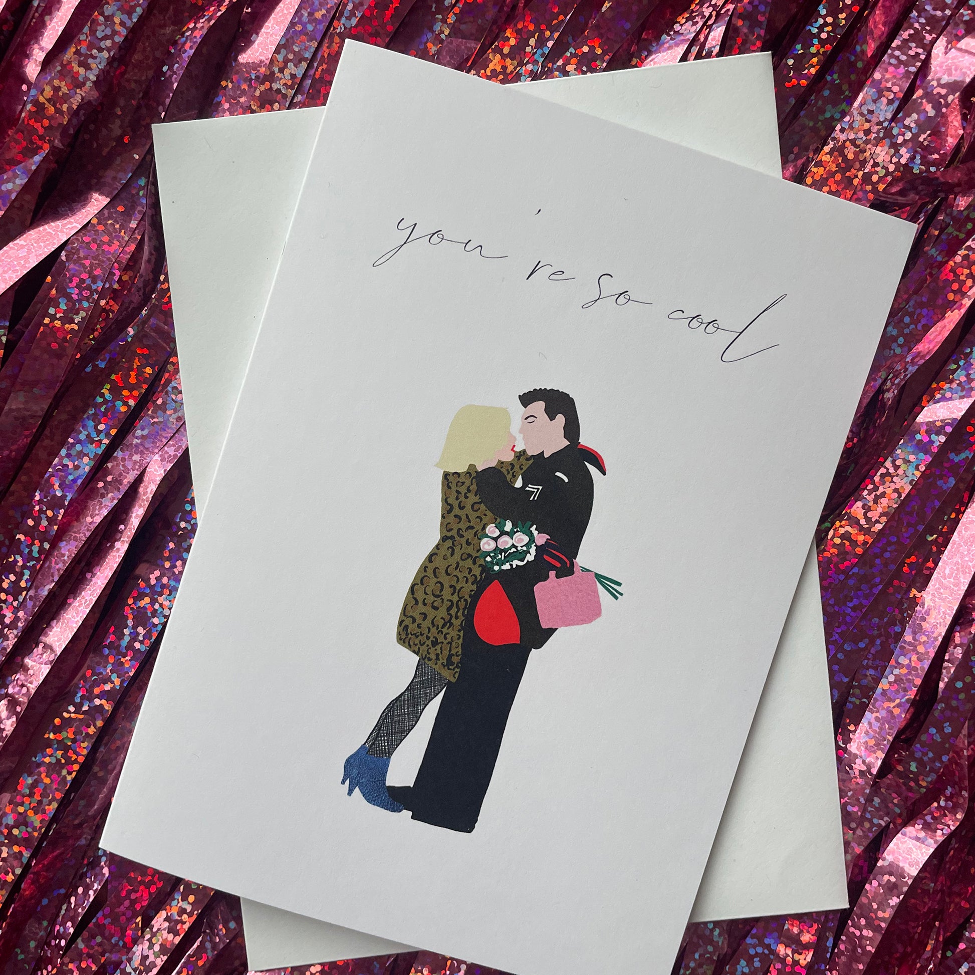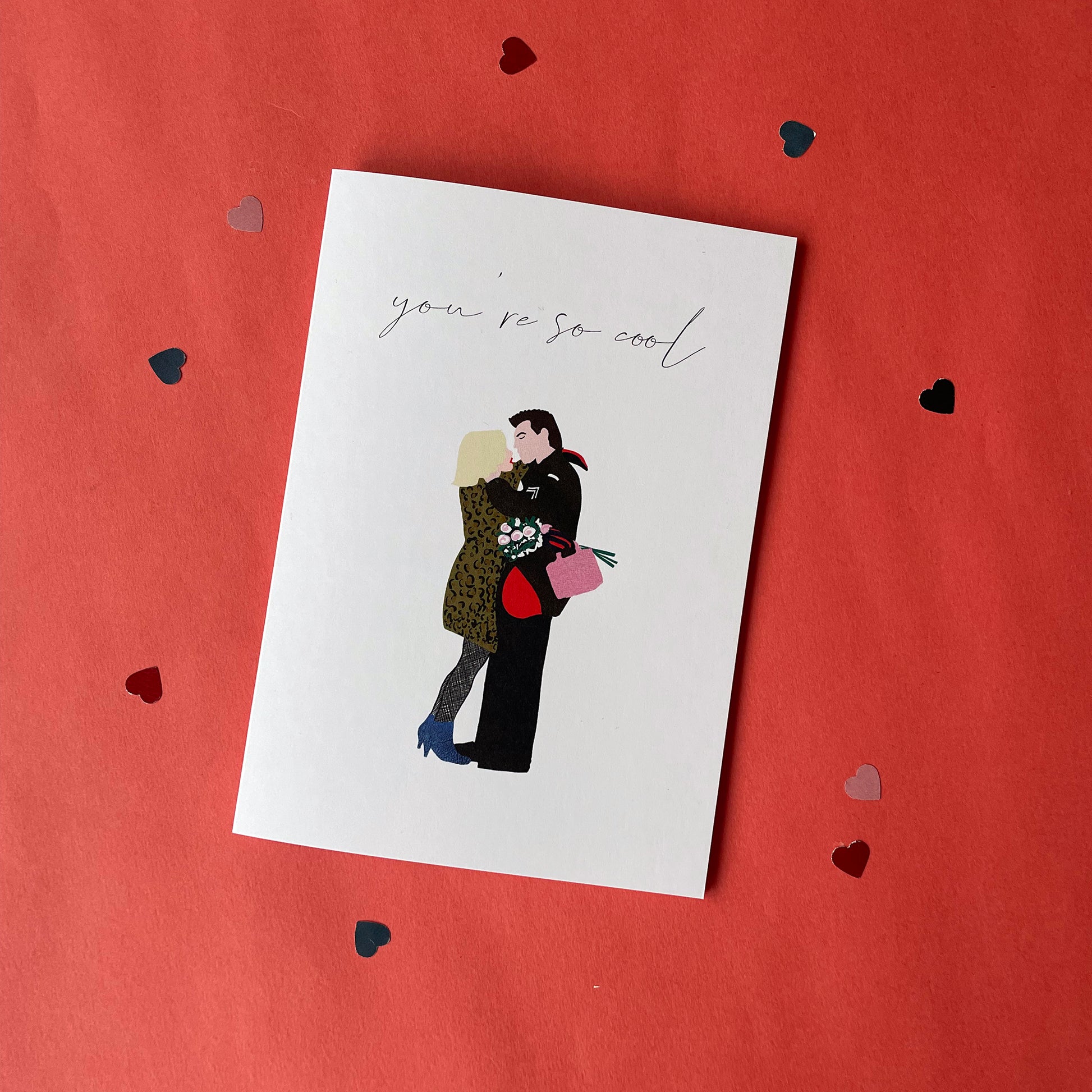 Tell someone how cool they are with this hand drawn and digitally printed card inspired by Clarence and Alabama from the cult movie True Romance. Perfect for so many occasions from Valentines Day to Birthdays, Weddings and Anniversaries.